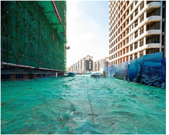 工地施工現(xiàn)場(chǎng)裸露區(qū)域百分之百綠網(wǎng)覆蓋,杜絕揚(yáng)塵。