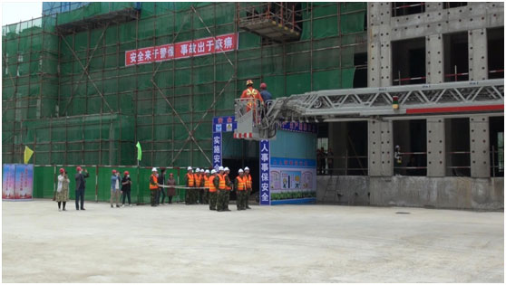 啟動儀式結(jié)束后,與會人員現(xiàn)場觀摩了由我公司組織的建筑行業(yè)應(yīng)急救援演練活動。演練科目包括基坑坍塌、高空墜落、消防安全。